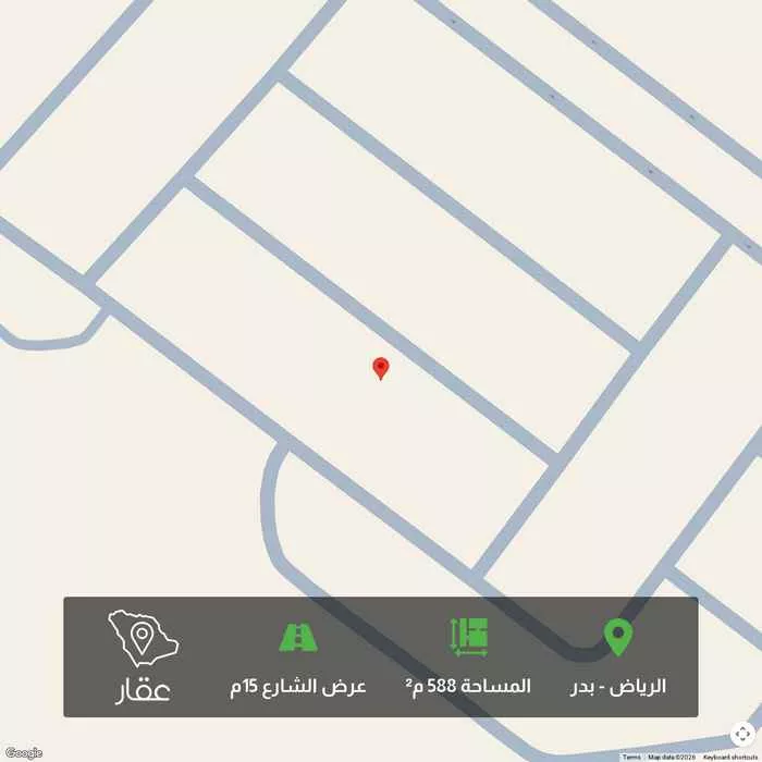 عرض على Aqarقطعة سكنية للبيع حي بدر مخطط بن سعيدان المساحة 588.75 م