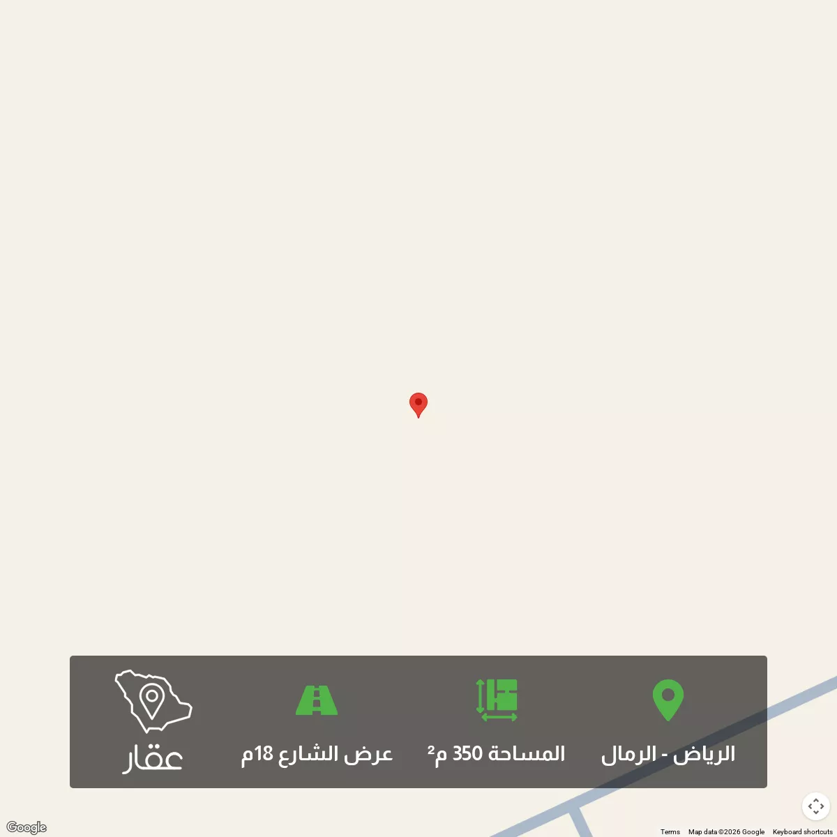 350 م² أرض في الرمال، الرياض معروضة بسعر ١٬٥٧٥٬٠٠٠ ريال، أقل بنسبة 34% من متوسط سعر الحي البالغ ٢٬٤٠٠٬٠٠٠ ريال. بناءً على 270 عقار مشابه.