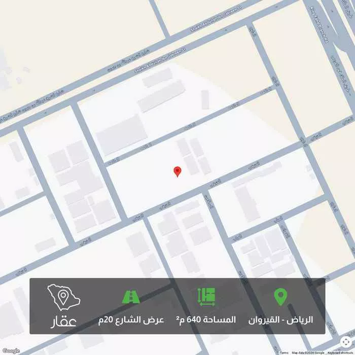 640 م² أرض في القيروان، الرياض معروضة بسعر ٦٬٤٠٦٬٢٥٠ ريال، أعلى بنسبة 90% من متوسط سعر الحي البالغ ٣٬٣٧٥٬٠٠٠ ريال. بناءً على 212 عقار مشابه.