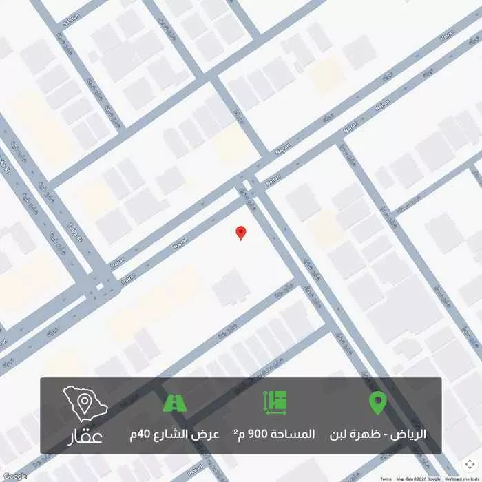 900 م² أرض في ظهرة لبن، الرياض معروضة بسعر ٣٬٦٠٠٬٠٠٠ ريال، أعلى بنسبة 45% من متوسط سعر الحي البالغ ٢٬٤٧٥٬٠٠٠ ريال. بناءً على 266 عقار مشابه.