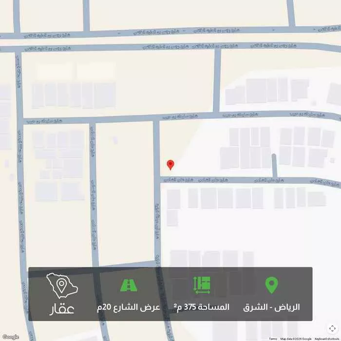 375 م² أرض في الشرق، الرياض معروضة بسعر ١٬٣١٢٬٥٠٠ ريال، أعلى بنسبة 119% من متوسط سعر الحي البالغ ٥٩٨٬٩٥٠ ريال. بناءً على 650 عقار مشابه.