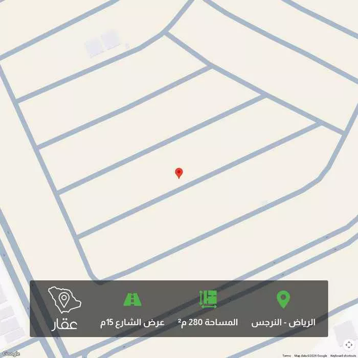 عرض على Aqarللبيع ارض سكنيه حي النرجس مساحه ٢٨٠ متر زاوية شارع ١٥ جنوبي شارع ٨ متر شرقي اطوال ١٤ في عمق ٢٠ البيع ٨٢٠٠ للمتر مباشر التوصل وتساب العرض للمشتري فقط نعتذر الوسطاء والمكاتب