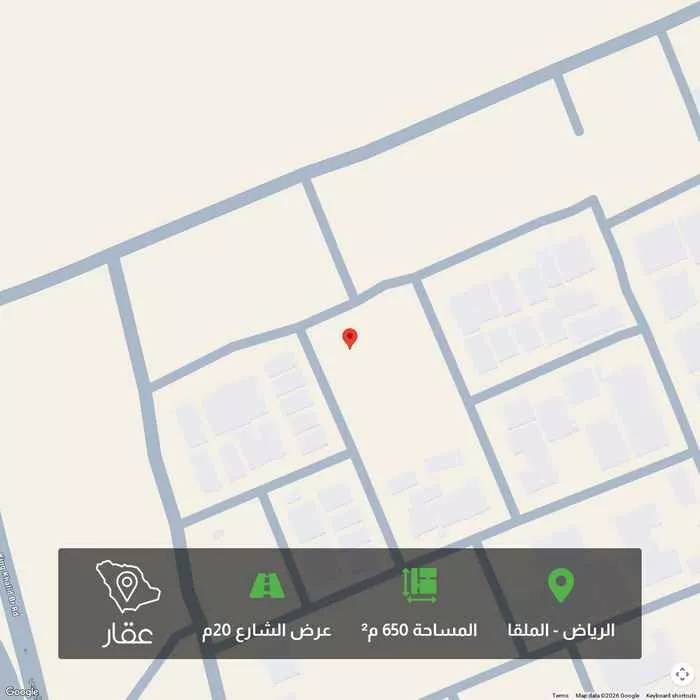 650 م² أرض في الملقا، الرياض معروضة بسعر ٩٬١٠٠٬٠٠٠ ريال، أعلى بنسبة 36% من متوسط سعر الحي البالغ ٦٬٦٩٩٬٦٨٠ ريال. بناءً على 119 عقار مشابه.