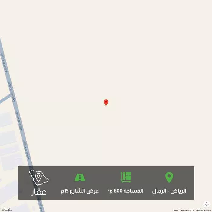 600 م² أرض في الرمال، الرياض معروضة بسعر ٢٬١٦٠٬٠٠٠ ريال، أقل بنسبة 10% من متوسط سعر الحي البالغ ٢٬٤٠٠٬٠٠٠ ريال. بناءً على 270 عقار مشابه.