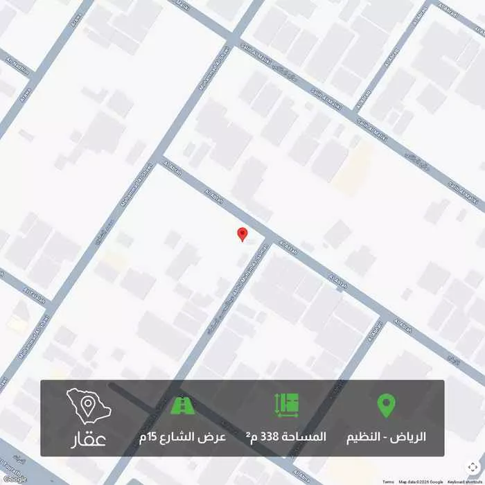 338 م² أرض في النظيم، الرياض معروضة بسعر ٩٤٦٬٤٠٠ ريال، أعلى بنسبة 26% من متوسط سعر الحي البالغ ٧٥٠٬٠٠٠ ريال. بناءً على 230 عقار مشابه.
