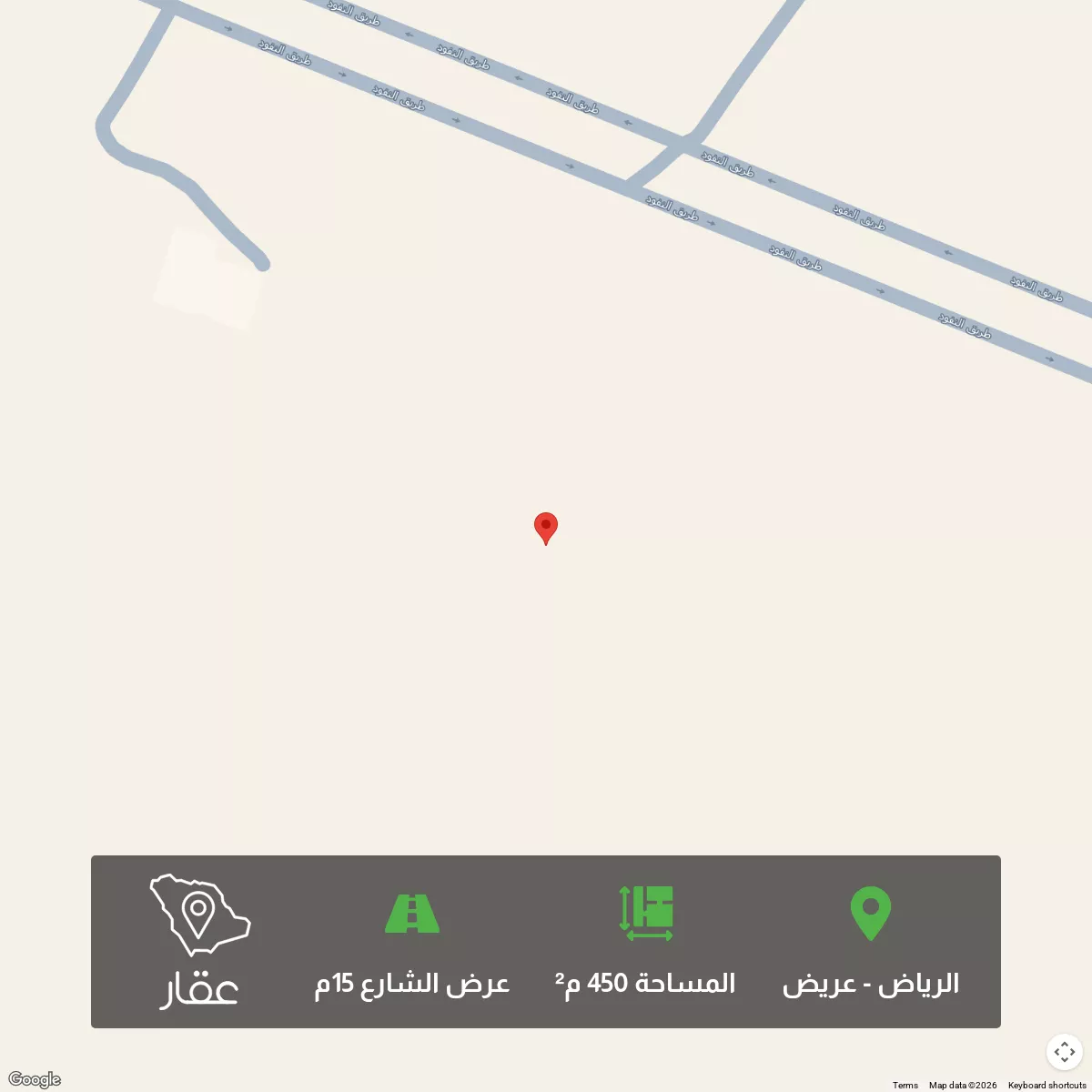450 م² أرض في عريض، الرياض معروضة بسعر ٣٦٠٬٠٠٠ ريال، أقل بنسبة 10% من متوسط سعر الحي البالغ ٣٩٩٬٦٠٠ ريال. بناءً على 653 عقار مشابه.