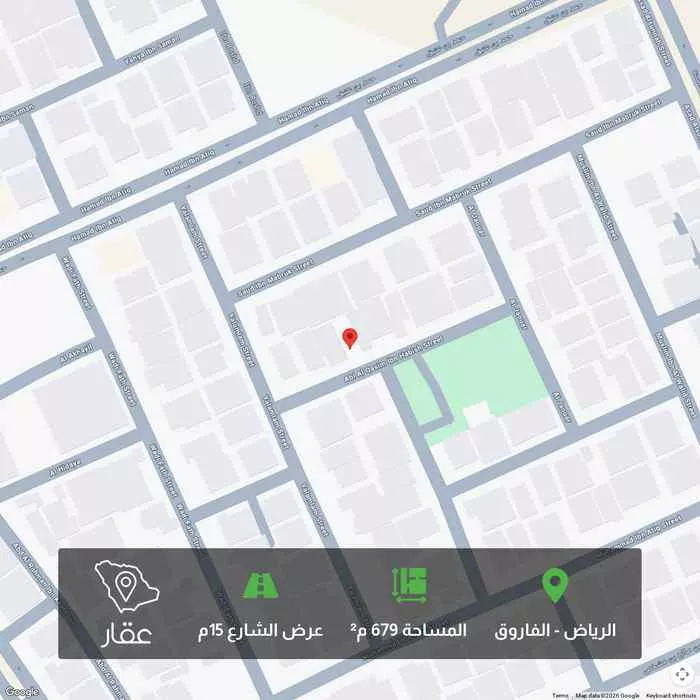 679 م² أرض في الفاروق، الرياض معروضة بسعر ٢٬٣٥٠٬٠١٩ ريال، أعلى بنسبة 7% من متوسط سعر الحي البالغ ٢٬١٩٠٬٠٠٠ ريال. بناءً على 12 عقار مشابه.