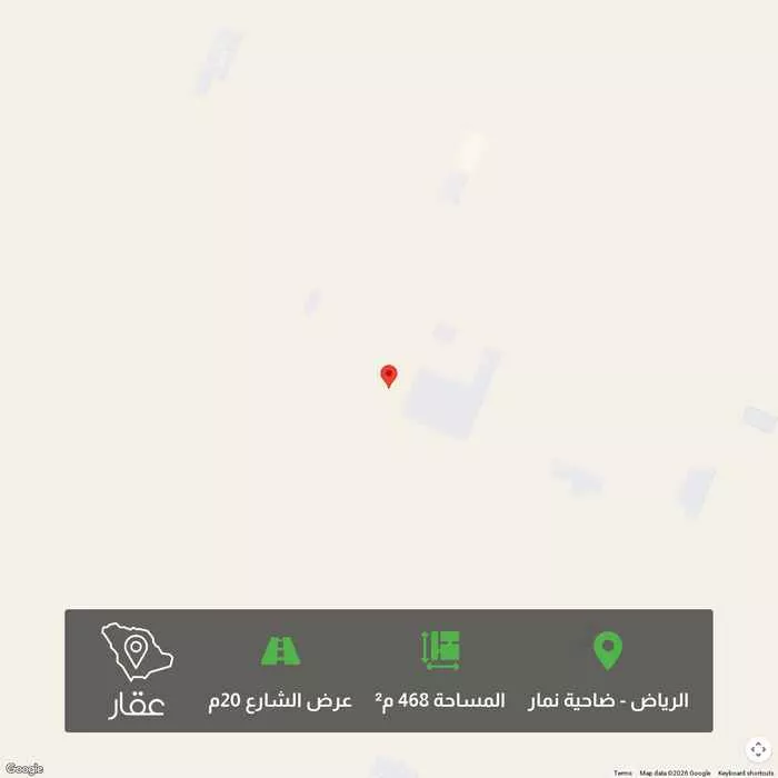 468 م² أرض في ضاحية نمار، الرياض معروضة بسعر ٧٠٢٬٠٠٠ ريال، أقل بنسبة 6% من متوسط سعر الحي البالغ ٧٥٠٬٠٠٠ ريال. بناءً على 439 عقار مشابه.