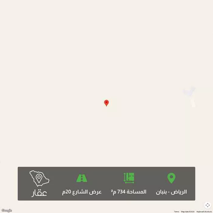 734 م² أرض في بنبان، الرياض معروضة بسعر ١٬٠٢٨٬٣٢٨ ريال، أعلى بنسبة 28% من متوسط سعر الحي البالغ ٨٠٤٬٥٦٢٫٥ ريال. بناءً على 944 عقار مشابه.
