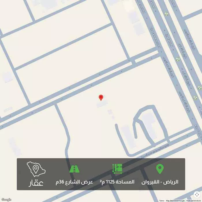 1125 م² أرض في القيروان، الرياض معروضة بسعر ١٥٬١٨٧٬٥٠٠ ريال، أعلى بنسبة 350% من متوسط سعر الحي البالغ ٣٬٣٧٥٬٠٠٠ ريال. بناءً على 212 عقار مشابه.