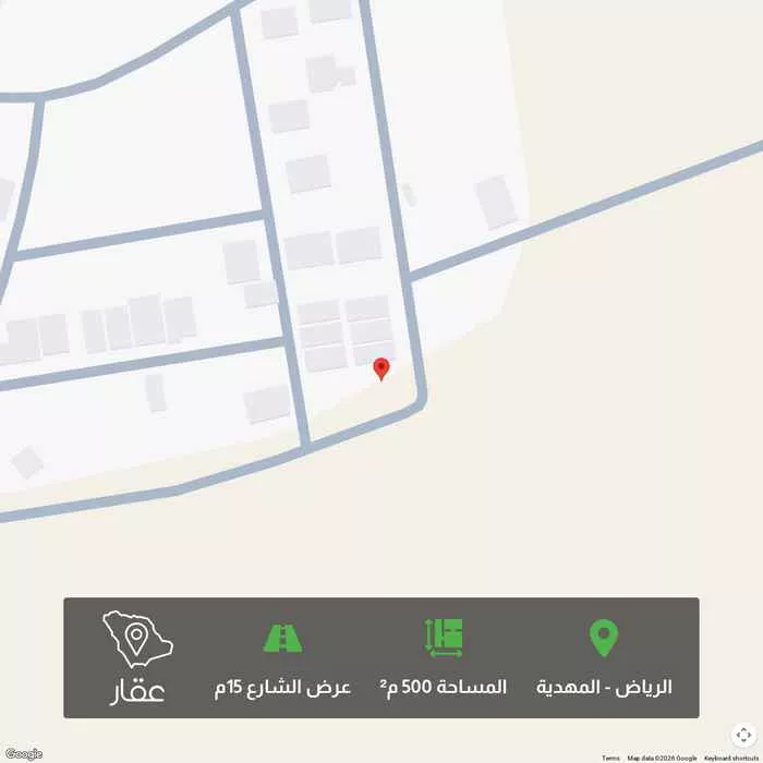 500 م² أرض في المهدية، الرياض معروضة بسعر ٢٬٢٠٠٬٢٦٩ ريال، أعلى بنسبة 21% من متوسط سعر الحي البالغ ١٬٨٢٠٬٠٠٠ ريال. بناءً على 371 عقار مشابه.
