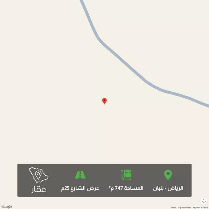 747 م² أرض في بنبان، الرياض معروضة بسعر ١٬٤٠٠٬٠٠٠ ريال، أعلى بنسبة 74% من متوسط سعر الحي البالغ ٨٠٤٬٥٦٢٫٥ ريال. بناءً على 944 عقار مشابه.