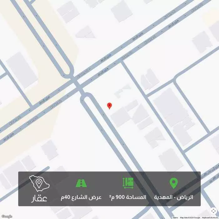 900 م² أرض في المهدية، الرياض معروضة بسعر ٥٬٠٠٠٬٠٠٠ ريال، أعلى بنسبة 172% من متوسط سعر الحي البالغ ١٬٨٣٩٬٨٤٠ ريال. بناءً على 364 عقار مشابه.