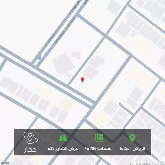 786 م² أرض في عكاظ، الرياض معروضة بسعر ١٬٦٥٠٬٦٠٠ ريال، أعلى بنسبة 16% من متوسط سعر الحي البالغ ١٬٤١٧٬٠٠٠ ريال. بناءً على 45 عقار مشابه.