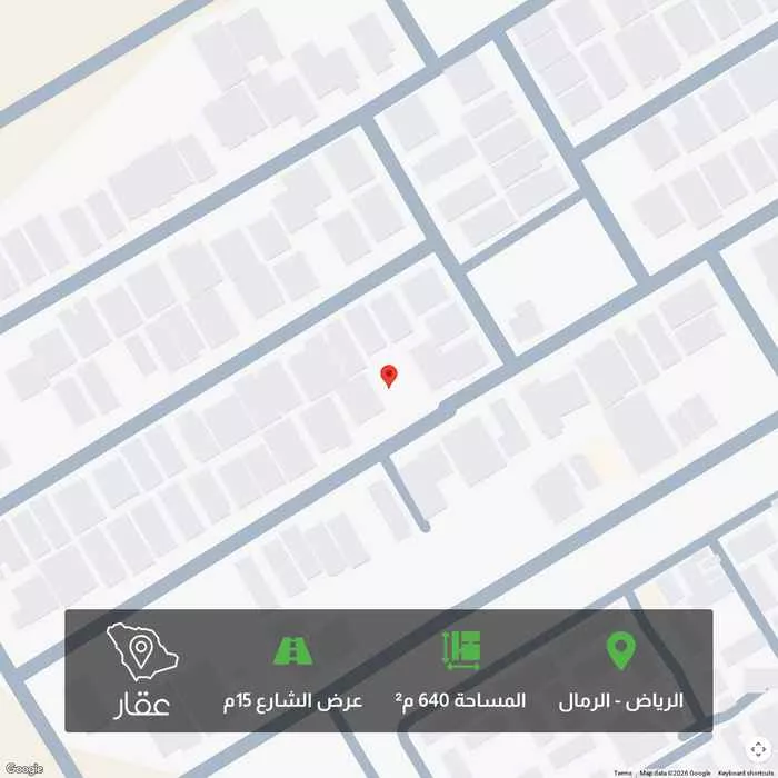 640 م² أرض في الرمال، الرياض معروضة بسعر ٢٬٤٩٧٬٩٥٠ ريال، أعلى بنسبة 4% من متوسط سعر الحي البالغ ٢٬٤٠٠٬٠٠٠ ريال. بناءً على 270 عقار مشابه.