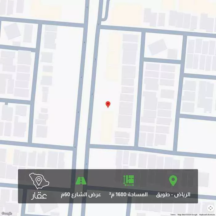 1680 م² أرض في طويق، الرياض معروضة بسعر ٥٬٨٨٠٬٠٠٠ ريال، أعلى بنسبة 194% من متوسط سعر الحي البالغ ٢٬٠٠٠٬٠٠٠ ريال. بناءً على 103 عقار مشابه.