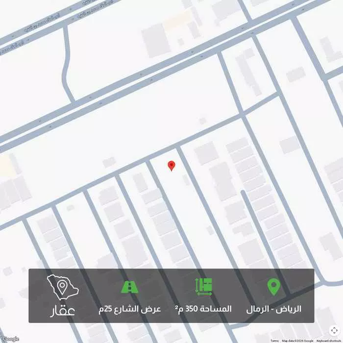 350 م² أرض في الرمال، الرياض معروضة بسعر ١٬٤٧٠٬٠٠٠ ريال، أقل بنسبة 39% من متوسط سعر الحي البالغ ٢٬٤٠٠٬٠٠٠ ريال. بناءً على 270 عقار مشابه.