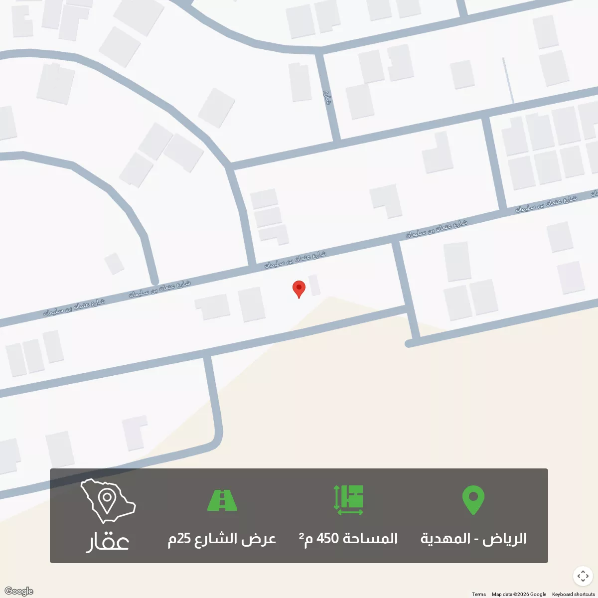 450 م² أرض في المهدية، الرياض معروضة بسعر ١٬٢٠٠٬١٥٠ ريال، أقل بنسبة 35% من متوسط سعر الحي البالغ ١٬٨٣٩٬٨٤٠ ريال. بناءً على 364 عقار مشابه.