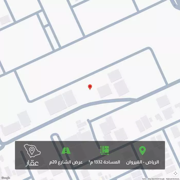 عرض على Aqarللبيع ارض تجاريه في حي القيروان متظاهره المساحه 1338 م