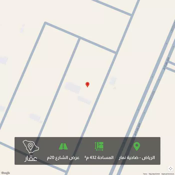 432 م² أرض في ضاحية نمار، الرياض معروضة بسعر ٥٥٠٬٣٦٨ ريال، أقل بنسبة 27% من متوسط سعر الحي البالغ ٧٥٠٬٠٠٠ ريال. بناءً على 439 عقار مشابه.