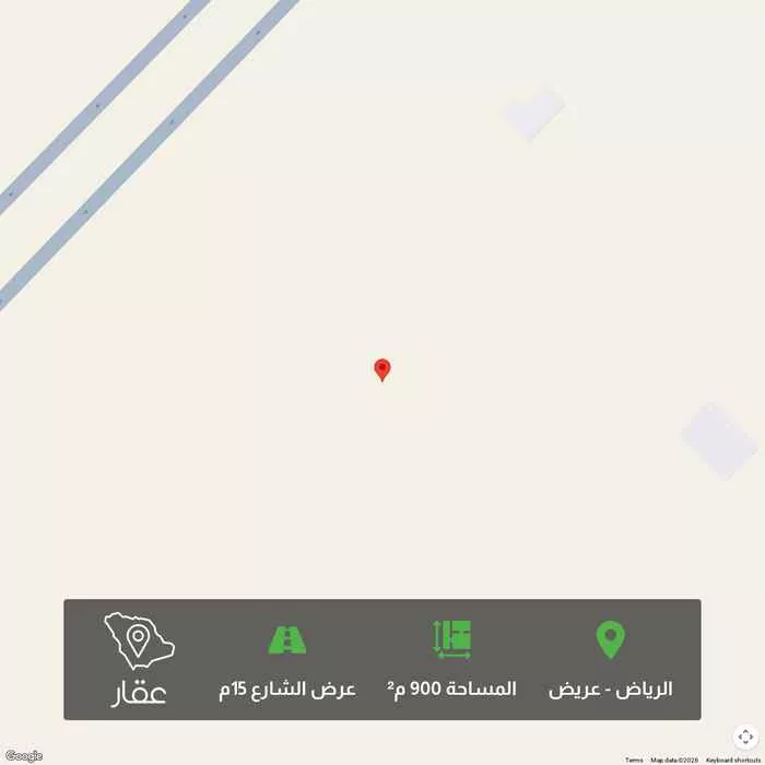 900 م² أرض في عريض، الرياض معروضة بسعر ٨١٠٬٠٠٠ ريال، أعلى بنسبة 103% من متوسط سعر الحي البالغ ٣٩٩٬٦٠٠ ريال. بناءً على 653 عقار مشابه.