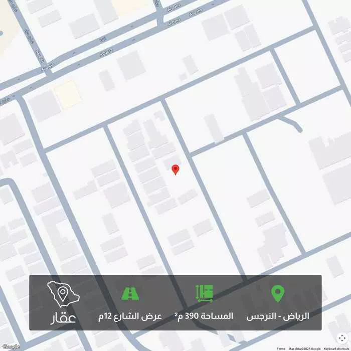 390 م² أرض في النرجس، الرياض معروضة بسعر ٢٬٩٢٥٬٠٠٠ ريال، بنفس متوسط سعر الحي البالغ ٢٬٩٢٥٬٠٠٠ ريال. بناءً على 404 عقار مشابه.