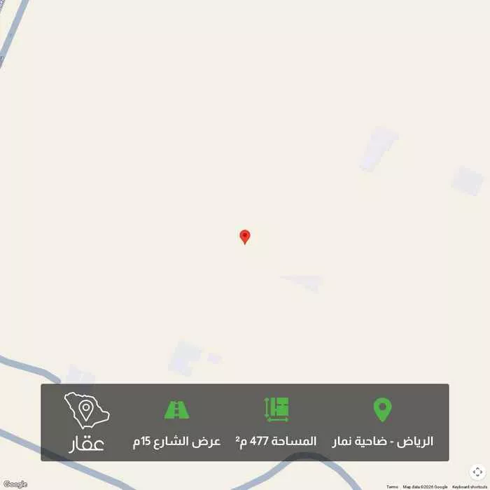 عرض على Aqarللبيع ارض سكنيه بحي ضاحية انمار مخطط 3020/هـ رقم القطعه 5383/2 الشارع: 15م شرقي اطوالها 13.25 في 36 المساحه الاجماليه: 477م على السوم