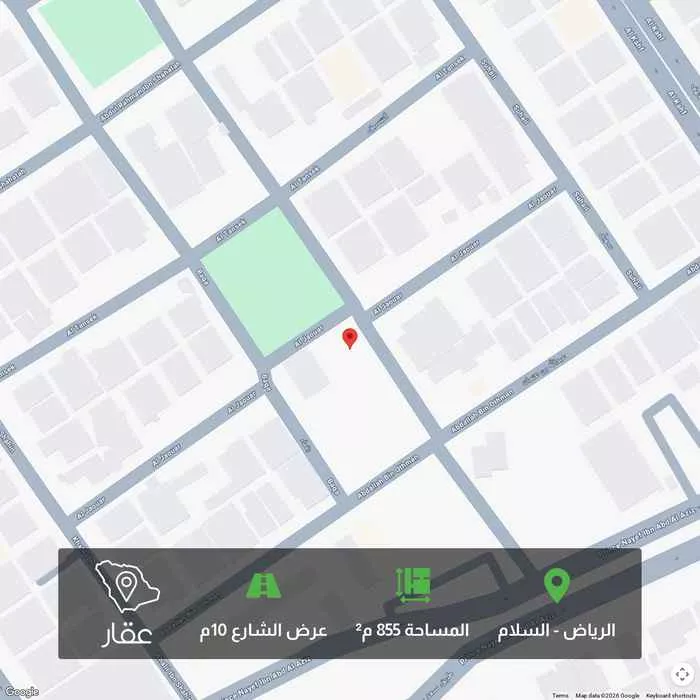 عرض على Aqarالسلام عليكم ارض للبيع فيه حي السلام المساحة 855 يحدها من شمال شارع عرض 10 بطول 28.5 وامامها مواقف حديقه و حديقه ايضا و جنوب قطعة 470 بطول 28.5 شرق شارع عرض 10 بطول 30 وامامها ميدان وغرب قطعة 469 بطول...