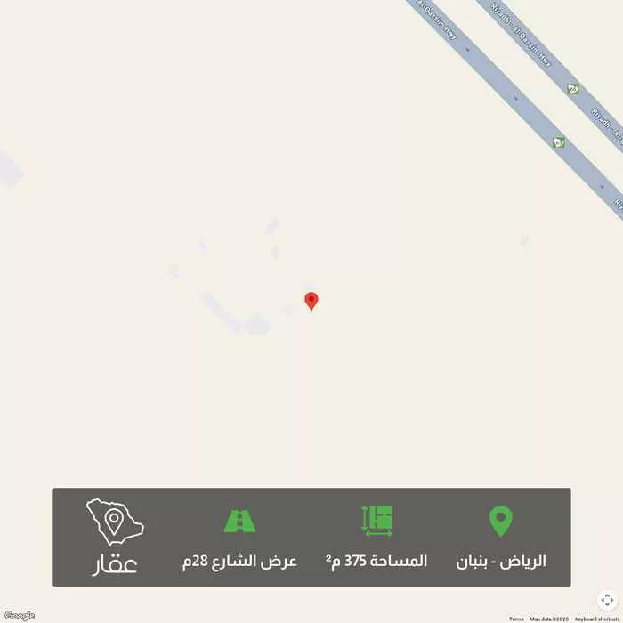 375 م² أرض في بنبان، الرياض معروضة بسعر ١٬٠١٢٬٥٠٠ ريال، أعلى بنسبة 26% من متوسط سعر الحي البالغ ٨٠٠٬٦٢٥ ريال. بناءً على 949 عقار مشابه.