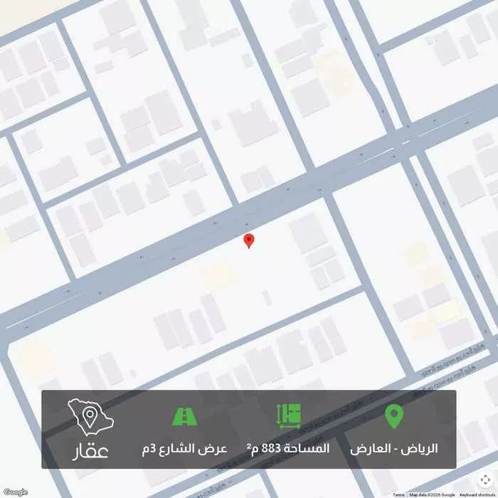 عرض على Aqarارض للبيع بحي العارض - شارع اسماء بنت مالك المساحة ٨٨٣.٤٤م الشارع ٣٠ شمالي الاطوال ٣٢.٧٢م × ٢٧م الطول على الشارع ٢٧م
