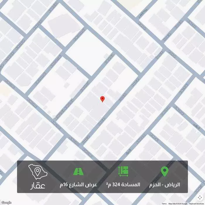 عرض على Aqarأرض مميزة في حي الحزم – خلف كودو الموقع: شارع المشـتل، حي الحزم المساحة: 12 م × 27 م = 324 متر مربع الحدود والأطوال: شمالاً: شارع عرض 15 متر جنوباً: قطعة رقم 263 بطول 12 متر شرقاً: قطعة رقم 262 بطول 1...
