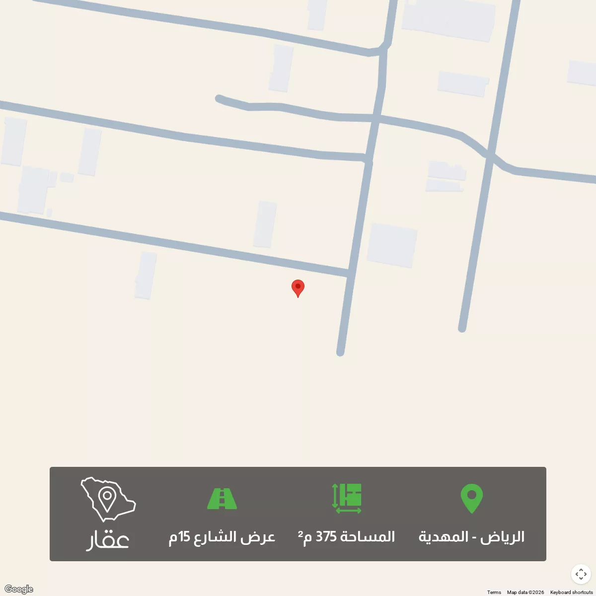 عرض على Aqarللبيع ارض سكنية بحي المهدية مساحة ٣٧٥م الواجهة شمالية على شارع 15م