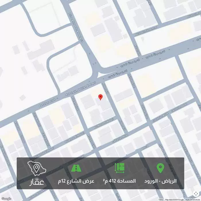 412 م² أرض في الورود، الرياض معروضة بسعر ٤٬١٢٥٬٠٠٠ ريال، أقل بنسبة 28% من متوسط سعر الحي البالغ ٥٬٧٠٢٬٥٠٠ ريال. بناءً على 22 عقار مشابه.