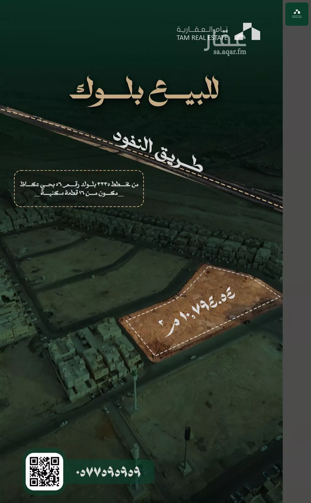 عرض على Aqarكود 200 للبيع بلوك بحي عكاظ بمساحة 10,794م قريب جداً من طريق النفود ويتوسط بين طريق ديراب وكبري قاعدة الملك سلمان الجوية تــــــــام العقاريـــــــة 0577500500
