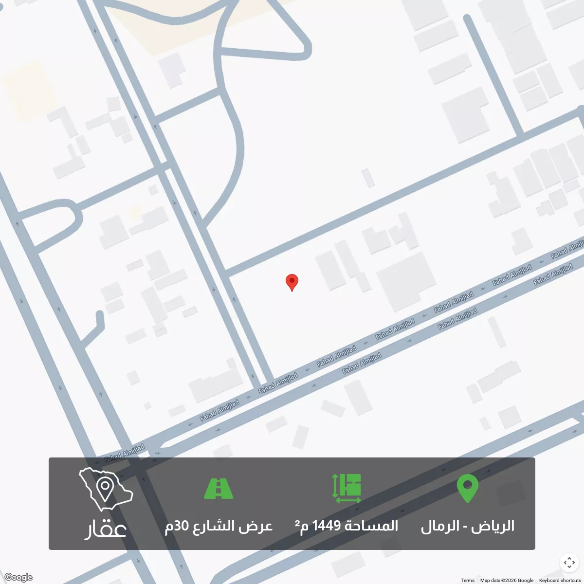 عرض على Aqarارض تجارية في حي الرمال مساحتها 1450 م على شارعين زاويه شارع 30 و شارع 25 نظام بناء ثلاث ادوار ونص قريبه من طريق الامير محمد بن سلمان تبعد عن المطار 12 دقيقه وعن طريق الثمامة ( امتداد التخصصي ) 3 دقاي...