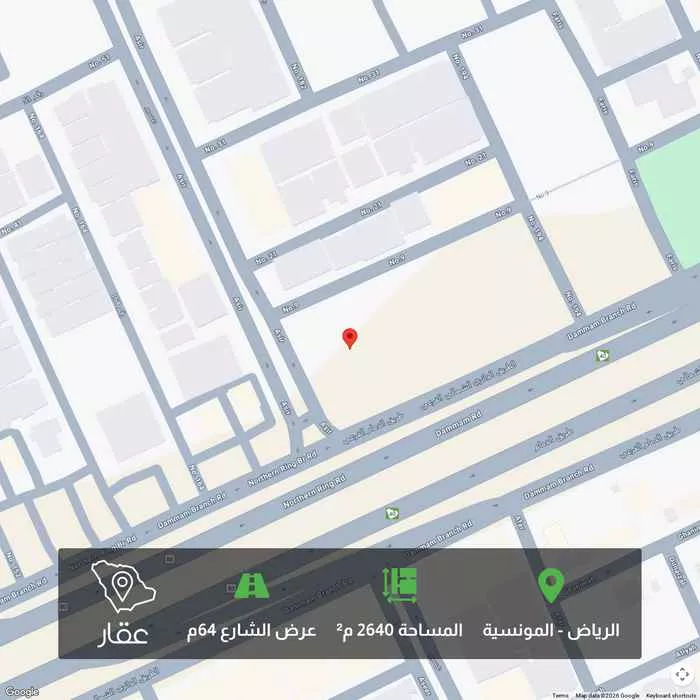 2640 م² أرض في المونسية، الرياض معروضة بسعر ٣٩٬٦٠٠٬٠٠٠ ريال، أعلى بنسبة 978% من متوسط سعر الحي البالغ ٣٬٦٧٥٬٠٠٠ ريال. بناءً على 57 عقار مشابه.