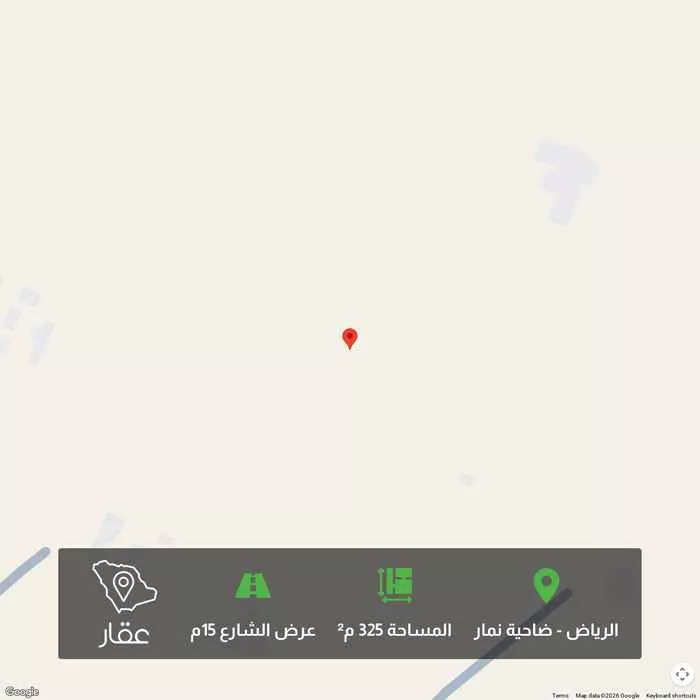 عرض على Aqarتفاصيل الأرض: • الموقع: حي نمار – مخطط 2030/م • المساحة: 325 متر مربع • الواجهة: شرقية اطوالها شيخه ١٣ في ٢٥ • طبيعة الأرض: مستوية بالكامل • مناسبة لبناء فيلا سكنية أو استثمار مستقبلي مميزات الموقع: •...