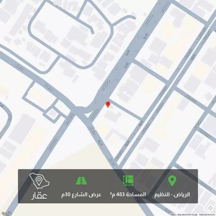 483 م² أرض في النظيم، الرياض معروضة بسعر ١٬٣٥٤٬٠٨٠ ريال، أعلى بنسبة 80% من متوسط سعر الحي البالغ ٧٥٣٬٠٠٠ ريال. بناءً على 228 عقار مشابه.