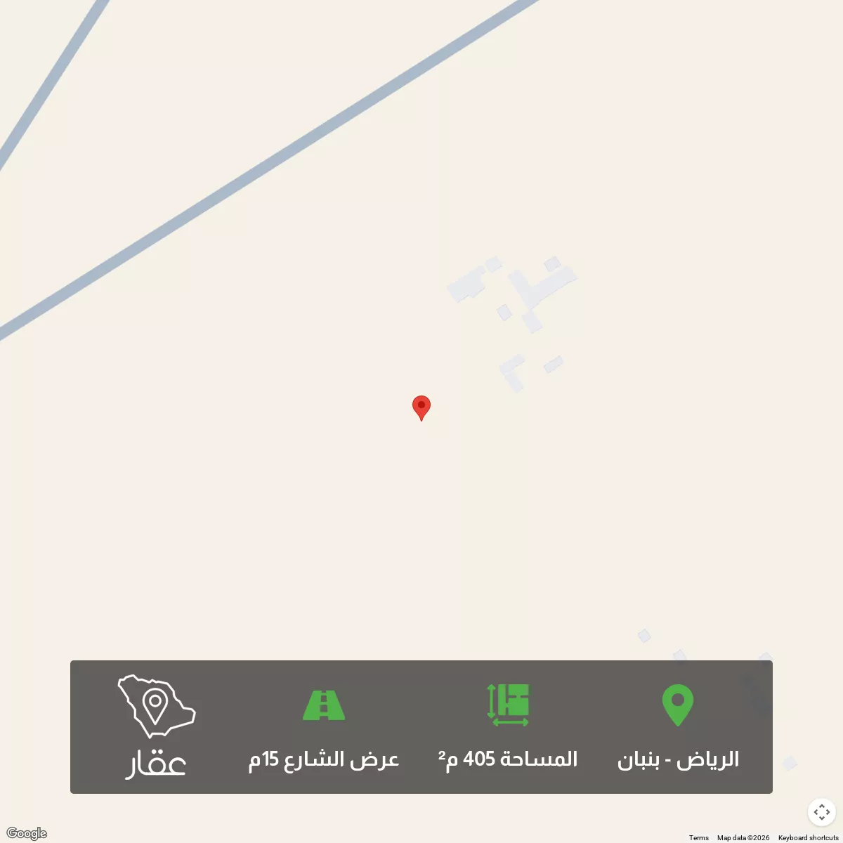 405 م² أرض في بنبان، الرياض معروضة بسعر ٥٨٧٬٢٥٠ ريال، أقل بنسبة 27% من متوسط سعر الحي البالغ ٨٠٤٬٥٦٢٫٥ ريال. بناءً على 944 عقار مشابه.