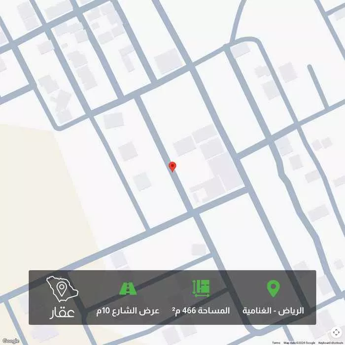 466 م² أرض في الغنامية، الرياض معروضة بسعر ٣٧٢٬٨٤٠ ريال، أقل بنسبة 25% من متوسط سعر الحي البالغ ٤٩٥٬٠٠٨ ريال. بناءً على 87 عقار مشابه.