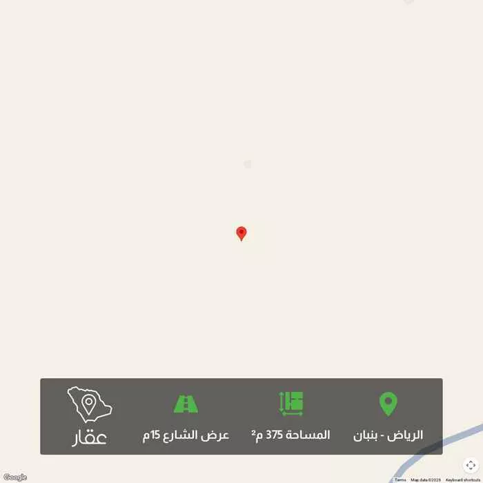 375 م² أرض في بنبان، الرياض معروضة بسعر ٥٠٠٬٢٥٠ ريال، أقل بنسبة 38% من متوسط سعر الحي البالغ ٨٠٤٬٥٦٢٫٥ ريال. بناءً على 944 عقار مشابه.
