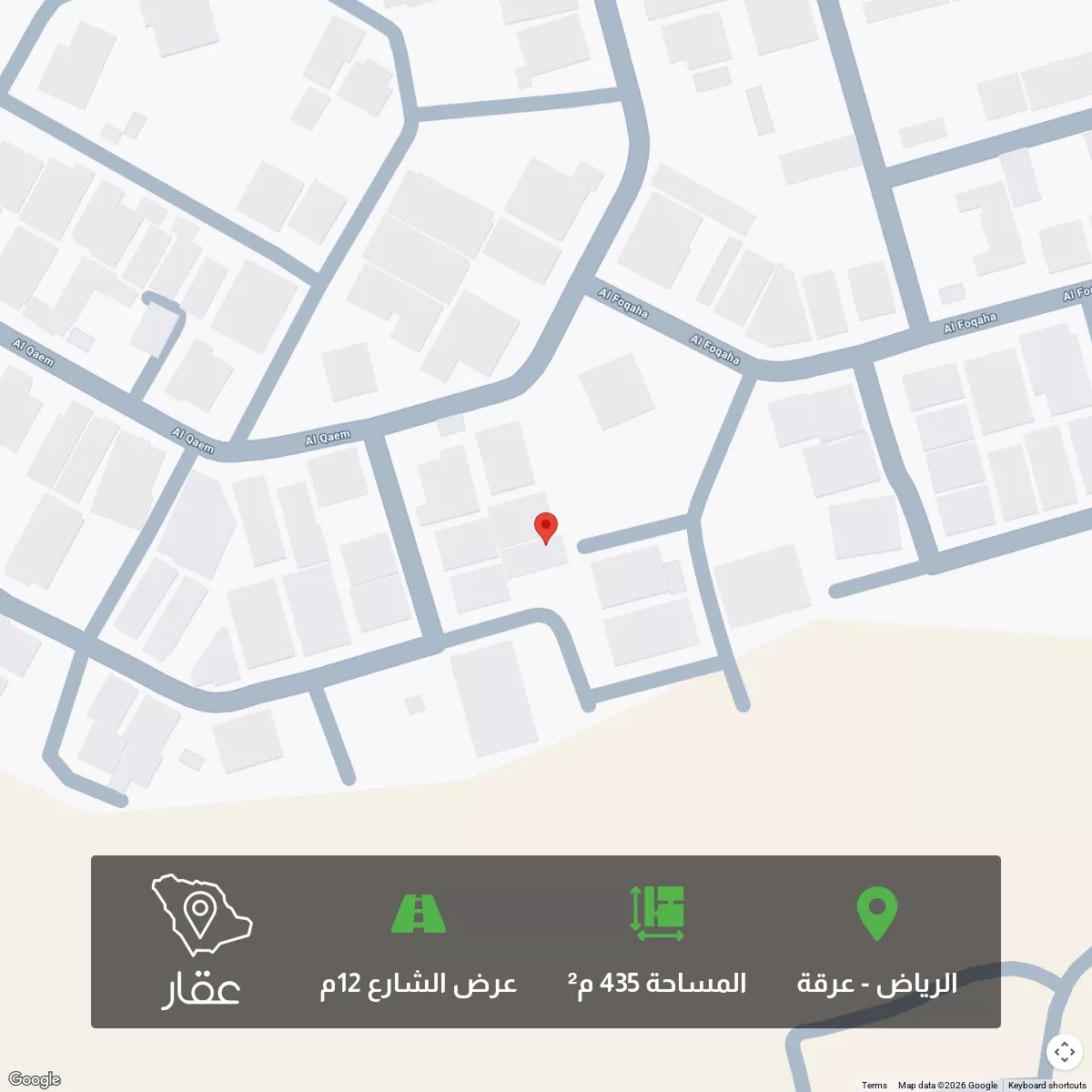 عرض على Aqarارض للبيع حي عرقة شارعين مساحة 435م الاطوال 35*12.5 ممر 4 شرقي شارع 12 جنوبي الحد 8100 نهائي