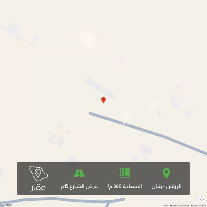 360 م² أرض في بنبان، الرياض معروضة بسعر ٩٣٦٬٠٠٠ ريال، أعلى بنسبة 16% من متوسط سعر الحي البالغ ٨٠٨٬٥٠٠ ريال. بناءً على 949 عقار مشابه.
