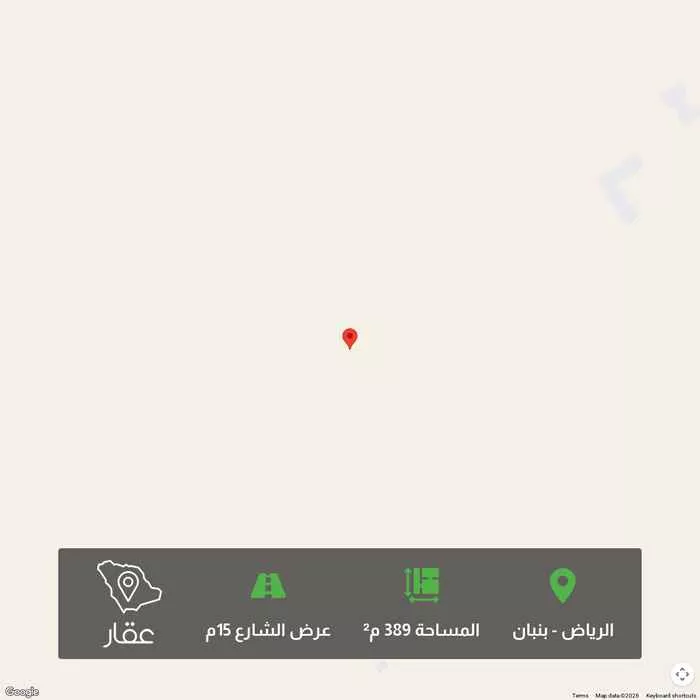 389 م² أرض في بنبان، الرياض معروضة بسعر ٥١٠٬٠٢٨ ريال، أقل بنسبة 37% من متوسط سعر الحي البالغ ٨٠٤٬٥٦٢٫٥ ريال. بناءً على 944 عقار مشابه.