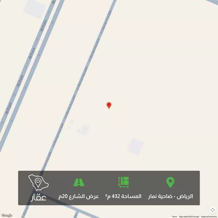 432 م² أرض في ضاحية نمار، الرياض معروضة بسعر ٦٤٩٬٧٢٨ ريال، أقل بنسبة 13% من متوسط سعر الحي البالغ ٧٥٠٬٠٠٠ ريال. بناءً على 439 عقار مشابه.