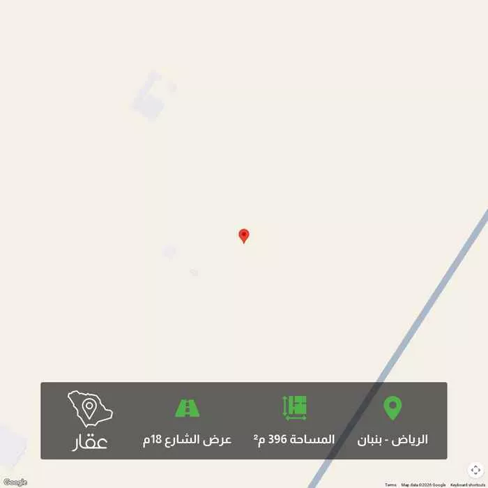 396 م² أرض في بنبان، الرياض معروضة بسعر ٥٨٠٬١٤٠ ريال، أقل بنسبة 28% من متوسط سعر الحي البالغ ٨٠٤٬٥٦٢٫٥ ريال. بناءً على 944 عقار مشابه.