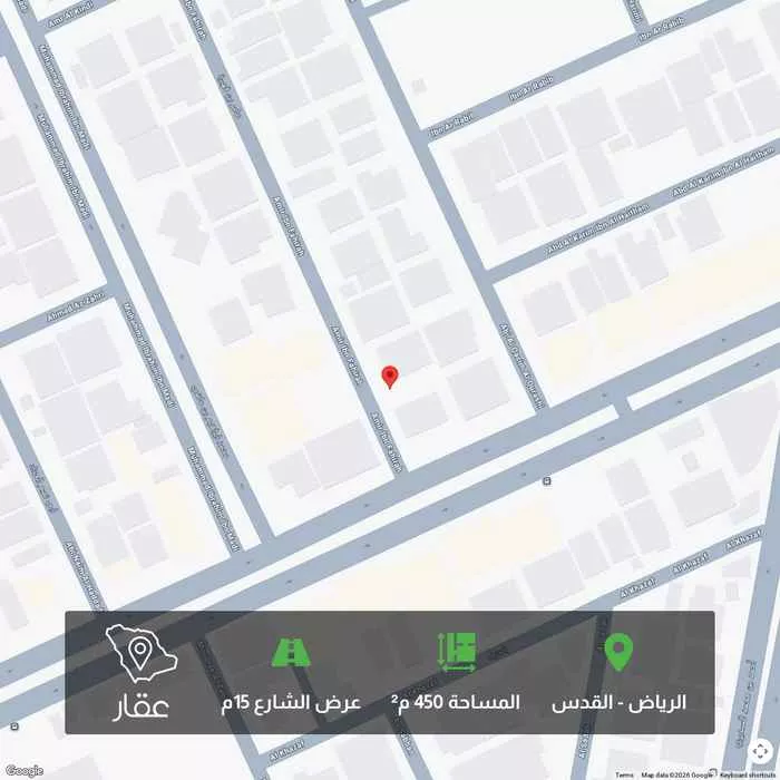 عرض على Aqarارض للبيع في حي القدس قريبه من طريق الملك عبدالله وطريق سعود الكبير وقريبه من الدائري الشرقي الاطوال 15 × 30