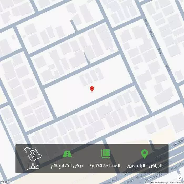 750 م² أرض في الياسمين، الرياض معروضة بسعر ٨٬٢٥٠٬٠٠٠ ريال، أعلى بنسبة 167% من متوسط سعر الحي البالغ ٣٬٠٨٥٬٦٠٠ ريال. بناءً على 67 عقار مشابه.