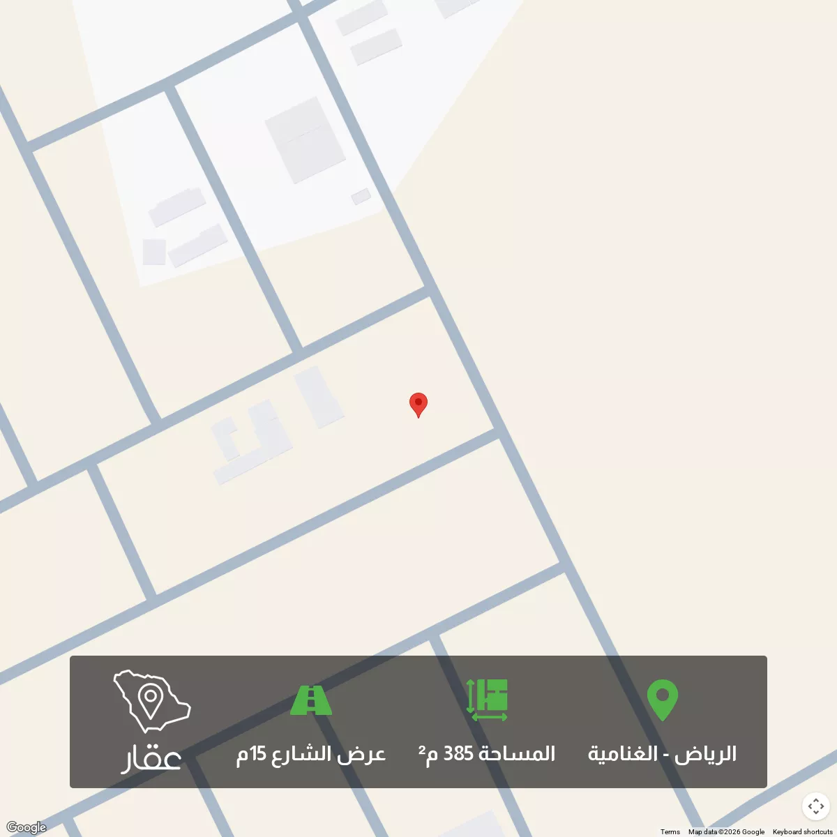 عرض على Aqarقطعة أرض استثمارية للبيع في الغنامية – مخطط 3258 رقم القطعة 4/104 (جنوب الرياض): • مساحة: 385 م² – شارع 15 م – • وجهة جنوبية • الطول 27.5 متر • العرض 14 متر • تصلح لمستودعات + مكاتب تشغيلية بنسبة 3...