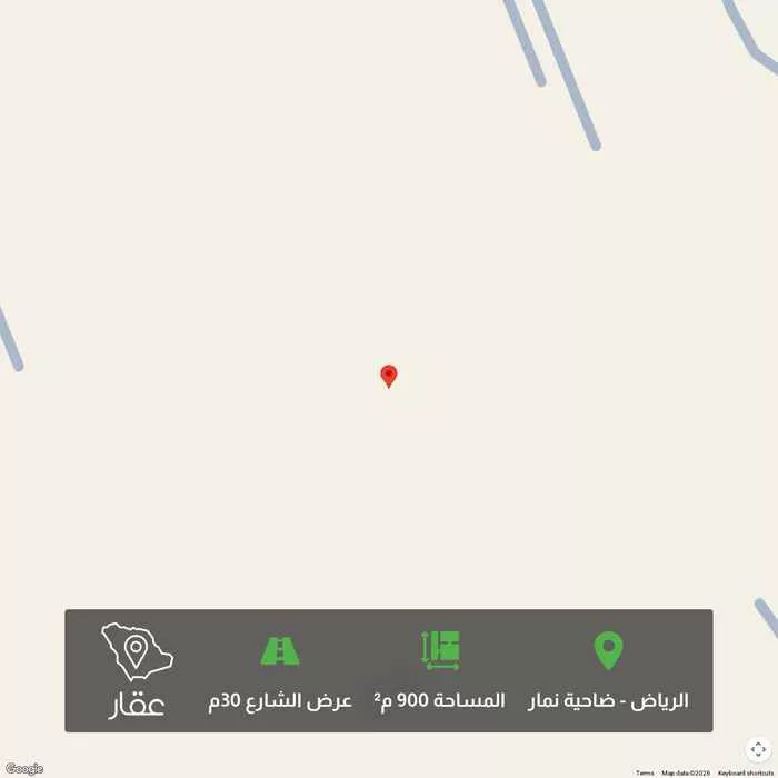 900 م² أرض في ضاحية نمار، الرياض معروضة بسعر ١٬٨٠٠٬٠٠٠ ريال، أعلى بنسبة 138% من متوسط سعر الحي البالغ ٧٥٦٬٦٠٠ ريال. بناءً على 438 عقار مشابه.